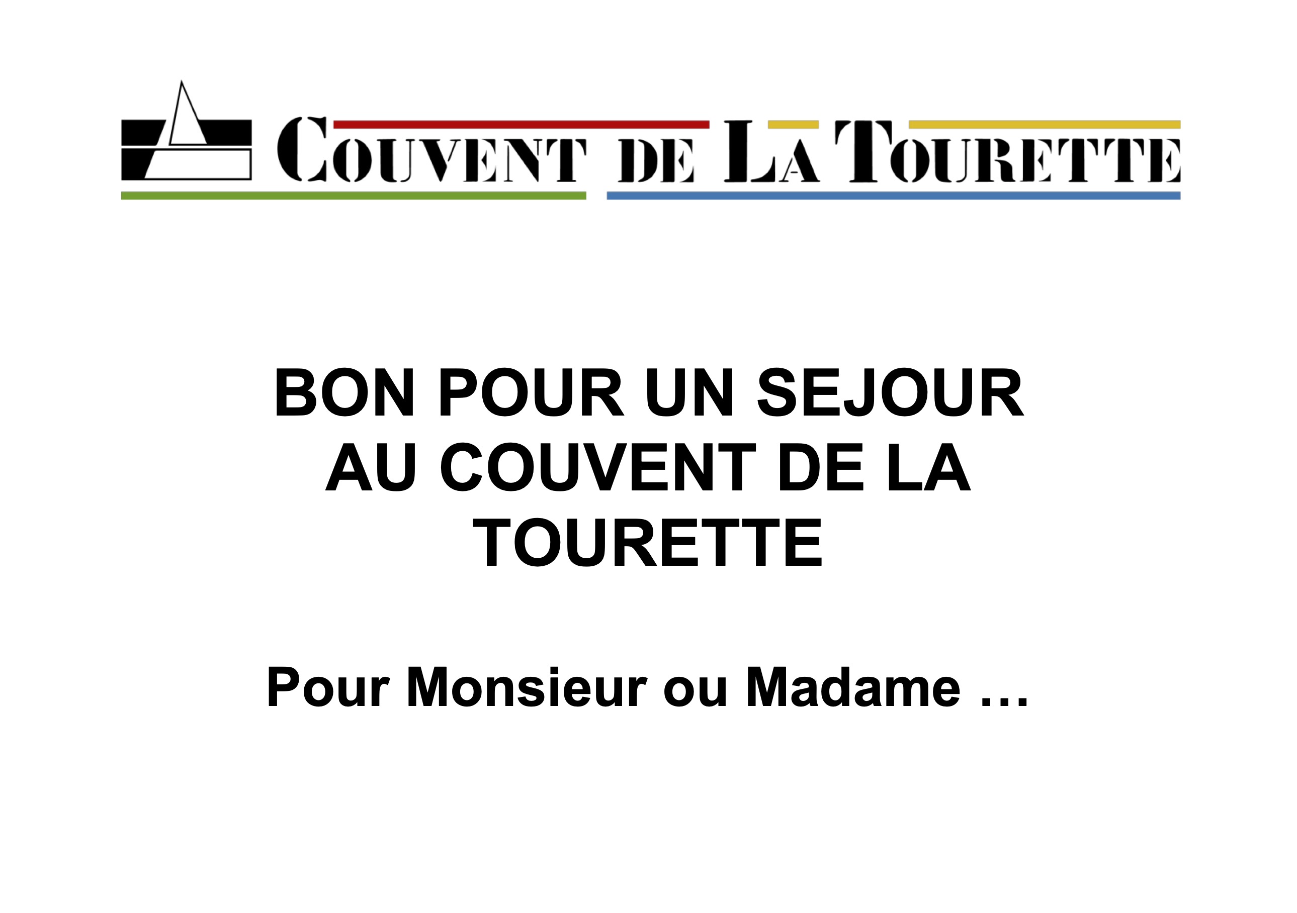Bon Cadeau pour un séjour au Couvent de La Tourette : 1 dîner, 1 nuit avec petit-déjeuner et déjeuner du lendemain pour 2 personnes | Gift voucher for a stay at the Couvent de La Tourette: 1 dinner, 1 night with breakfast and lunch the following day for